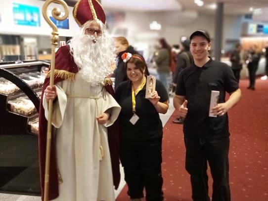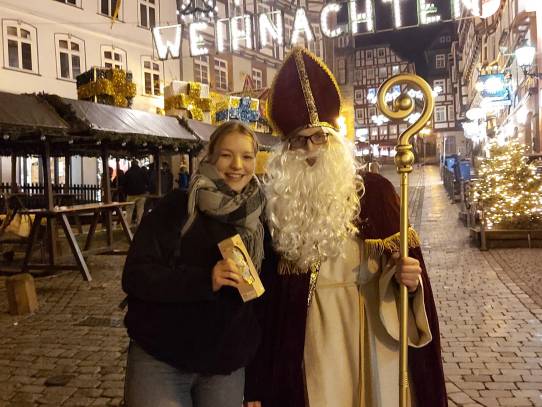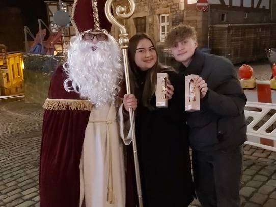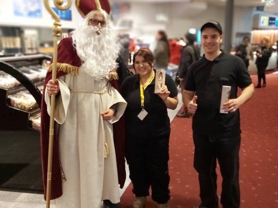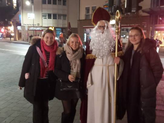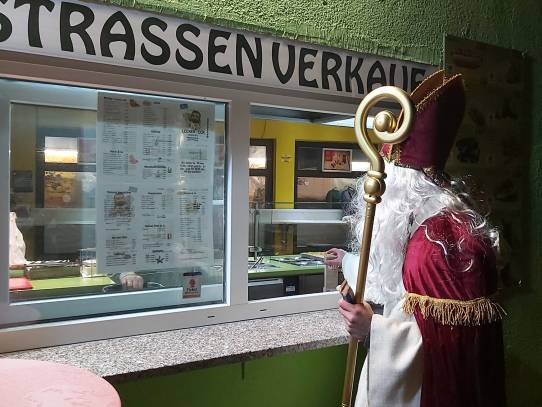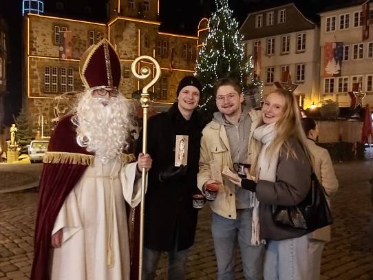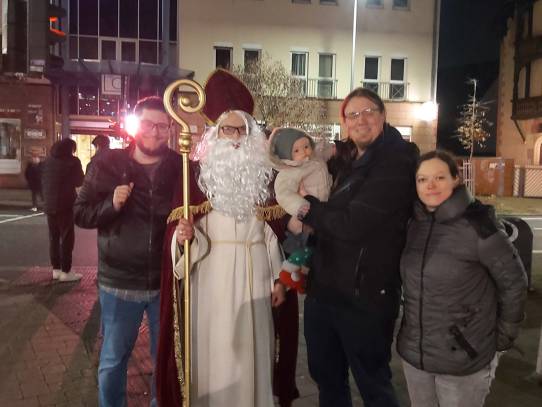 "Überall wo wir hinkamen - ob am und im Kino, dem Restaurant Enchilada, der Oberstadt, dem Basic Coffee oder dem Market, wir wurden freudig begrüßt und standen schon ein bisschen im Rampenlicht.", Sebastian Bleek Pastoralassistent St. Peter und Paul, als Nikolaus der Aktion.