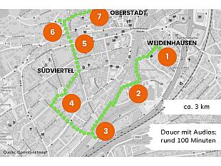 Für den rund 100-minütigen Spaziergang benötigt man ein Smartphone sowie Kopfhörer und kann dann im eigenen Tempo die rund 3 km lange Route laufen.